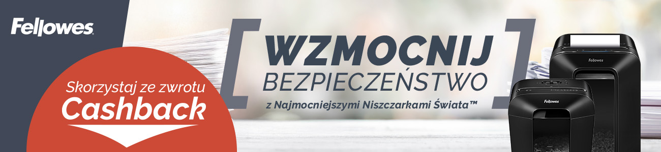 Kup wybrane produkty Fellowes i zarejestruj ich zakup na stronie www.fellowes-promotion.com, aby otrzymać zwrot części ceny zakupu. Oferta obowiązuje przy zakupie od 1.01.2026 do 30.04.2026. Szczegółowe warunki promocji dostępne na stronie www.fellowes-promotion.com